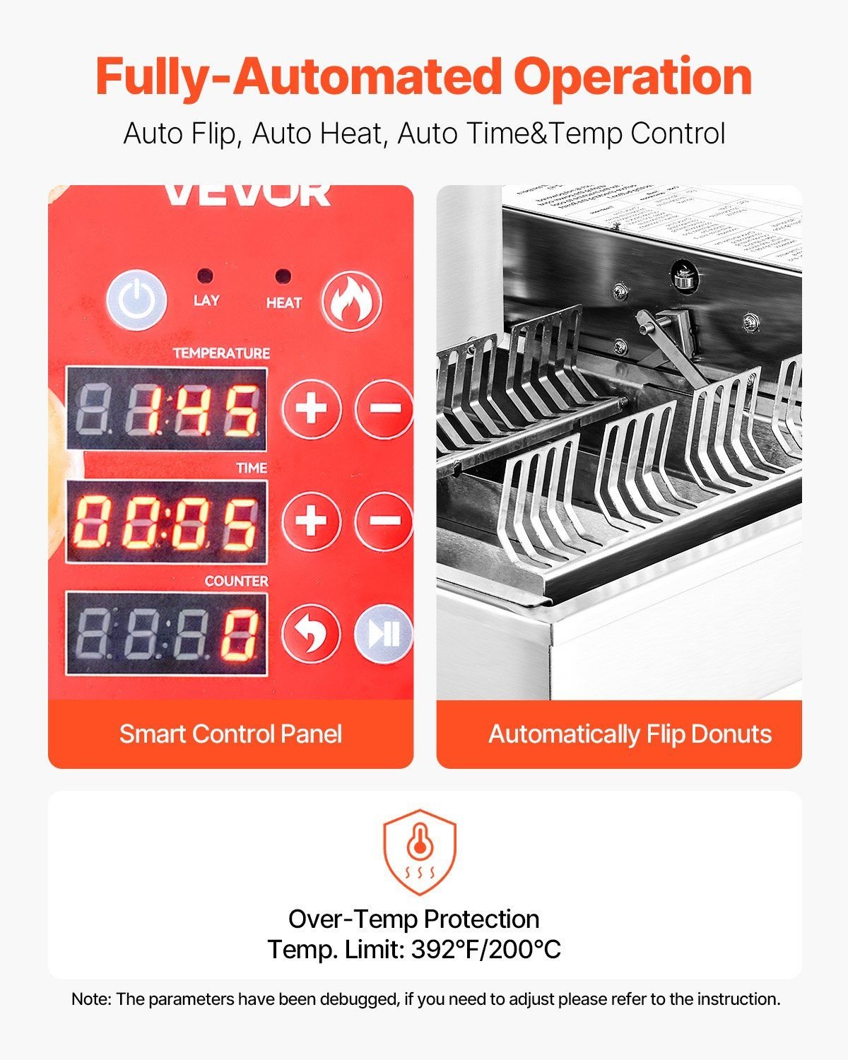 2.Fully-Automated Operation: This donuts making machine comes with a smart control panel that makes it easy for your team to produce consistent donuts with minimal effort. It features automated donut flipping to ensure even cooking. Simply set it, and let the machine do the work