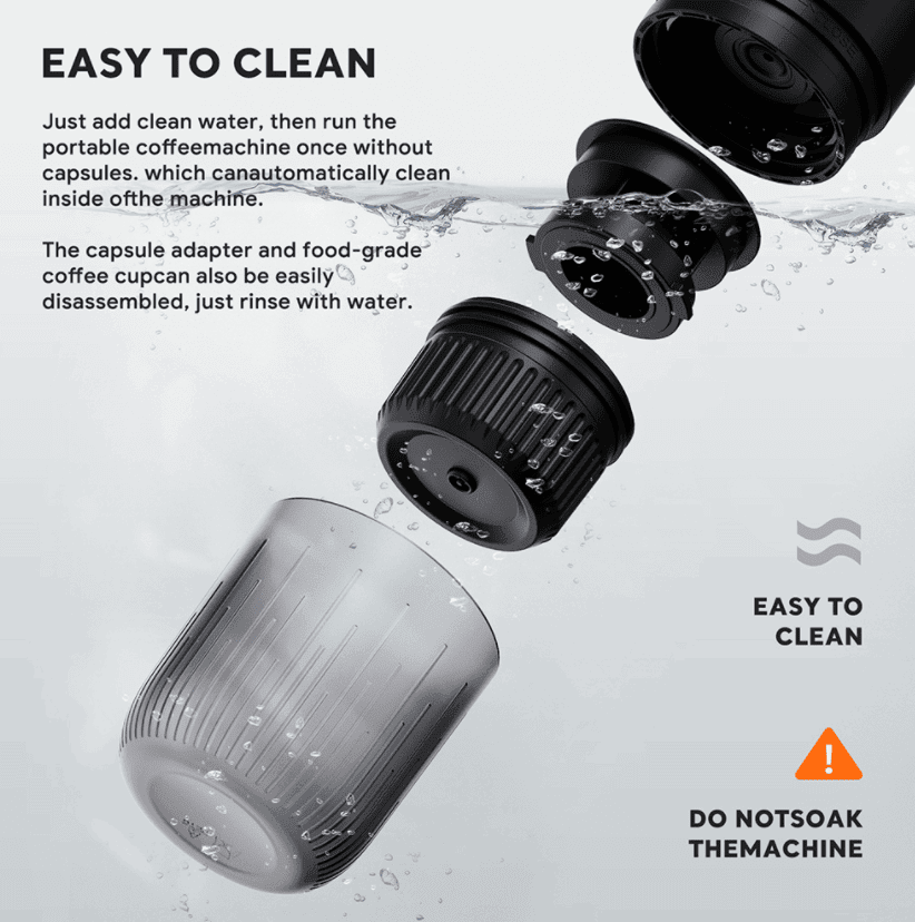SKU: PSME2604 Portable Car Coffee Maker with 88-92°C Automatic Pressure Extraction