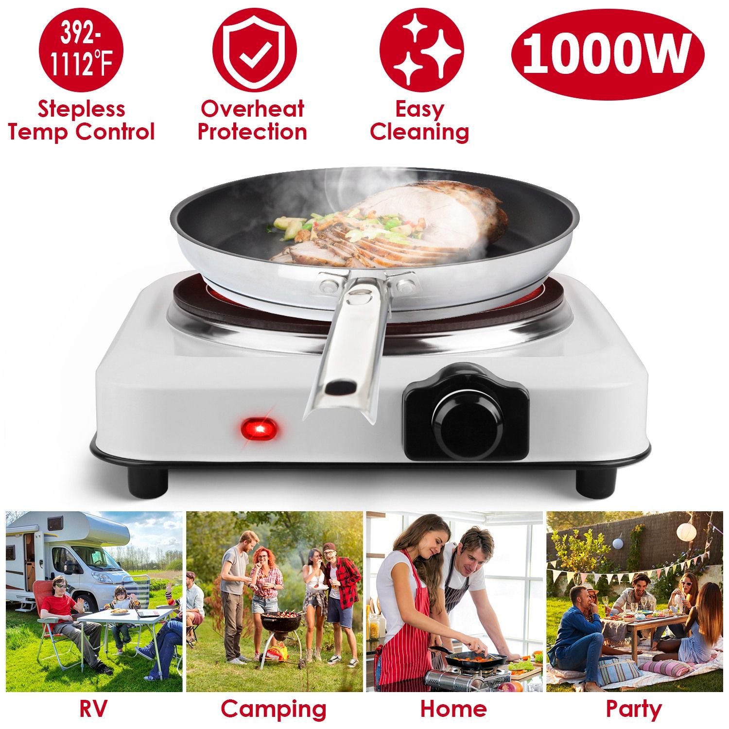 Stepless Heating Temperature: With stepless heating temperature adjustment from 392℉ to 1112℉, easily meet your daily cooking needs, such as boiling water, reheating sauces, making soups, frying steak, cooking pasta, grilling cheese and vegetables, etc.. Knob control and indicator light allow for convenient operation.