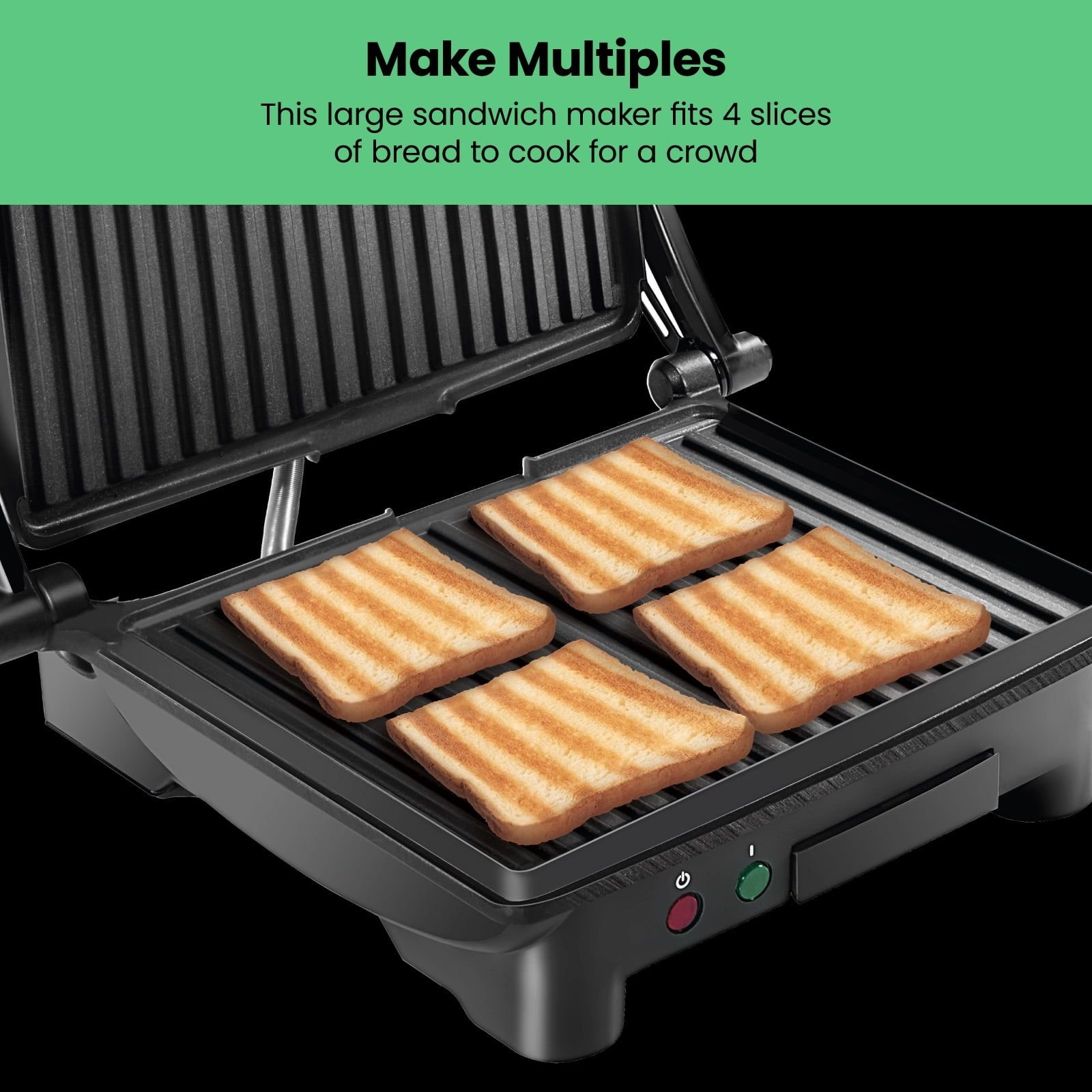 1.Grills up to four sandwiches or multiple ingredients simultaneously.